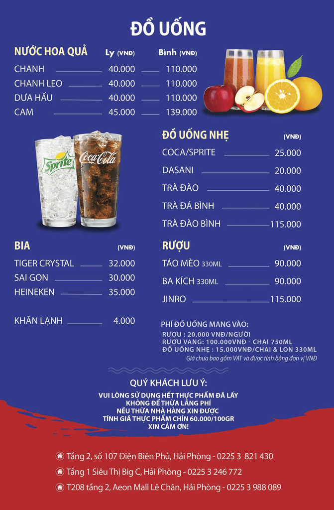 Thực đơn cơ sở HP3 BBQ BigC (GO), Aeon Mall Hải Phòng